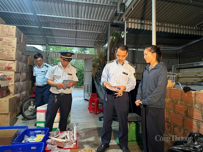 Lực lượng QLTT Hà Tĩnh xử lý vụ kinh doanh thực phẩm không rõ nguồn gốc, buộc tiêu hủy 116 kg hàng hóa vi phạm. Ảnh: QLTT Hà Tĩnh