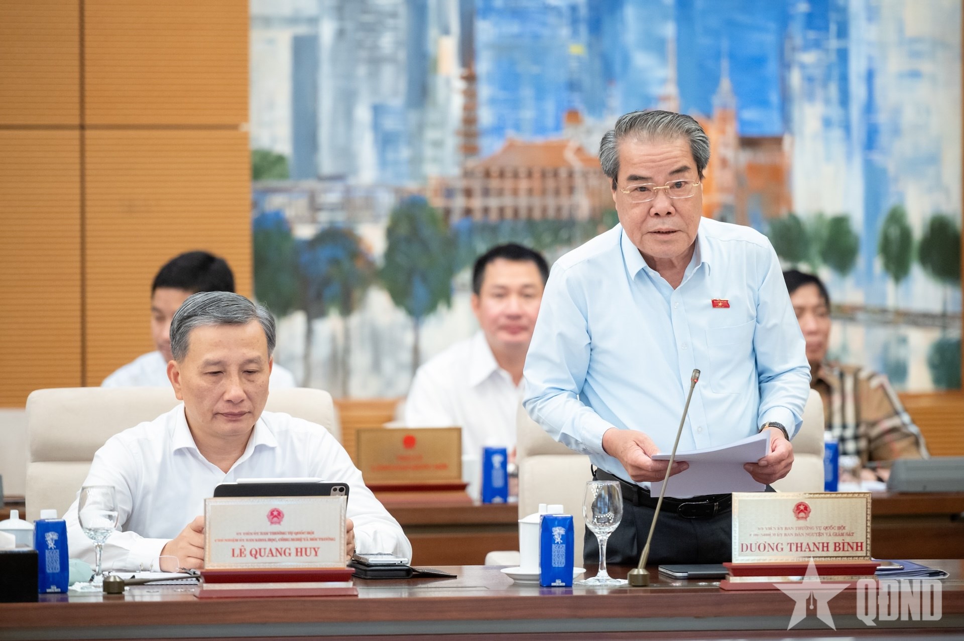 | Chủ nhiệm Ủy ban Dân nguyện và Giám sát của Quốc hội Dương Thanh Bình báo cáo tại phiên họp. Ảnh: PHẠM THẮNG |