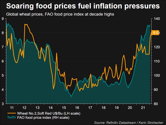 Giá lúa mì trên thế giới, chỉ số giá của FAO cao nhất nhiều thập niên