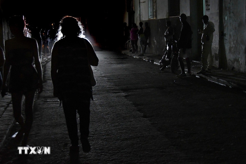 Đường phố chìm trong bóng tối do mất điện tại La Habana, Cuba. Ảnh: TTXVN |