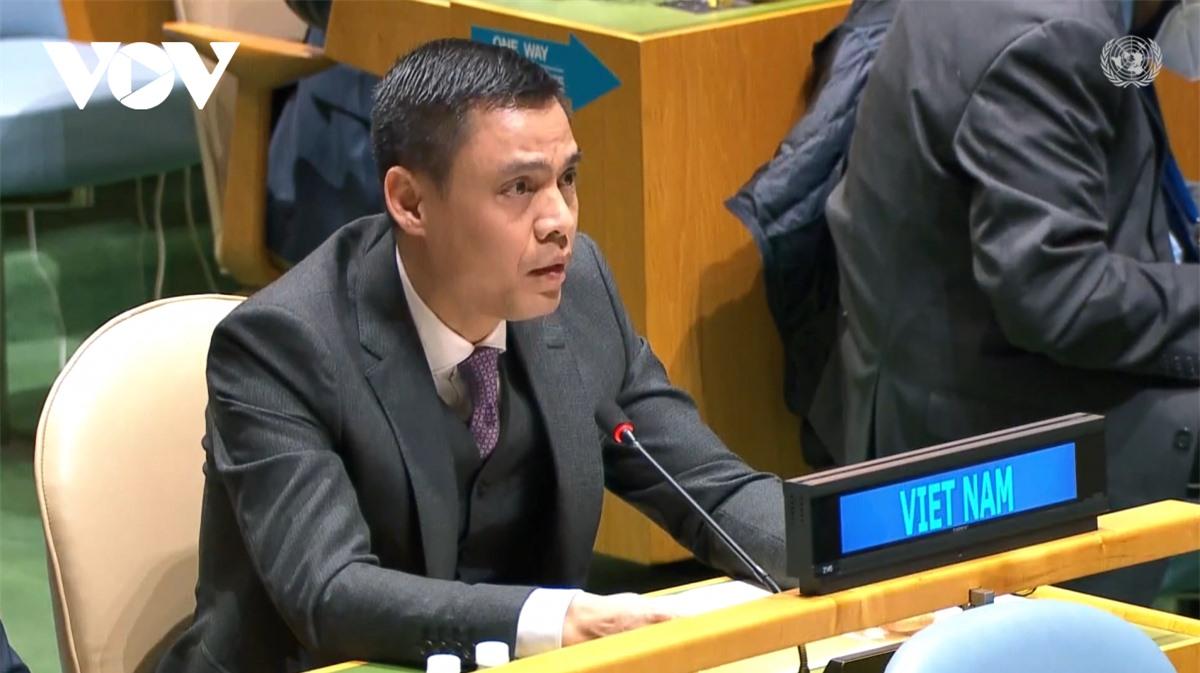 Phát biểu tại cuộc họp, Đại sứ Đặng Hoàng Giang, Trưởng Phái đoàn thường trực Việt Nam tại LHQ tái khẳng định lập trường nhất quán của Việt Nam về giải quyết các tranh chấp quốc tế bằng các biện pháp hòa bình trên cơ sở tôn trọng Hiến chương LHQ và luật pháp quốc tế, đặc biệt là nguyên tắc tôn trọng độc lập, chủ quyền, toàn vẹn lãnh thổ của các quốc gia, không can thiệp vào công việc nội bộ, không sử dụng vũ lực trong quan hệ quốc tế.