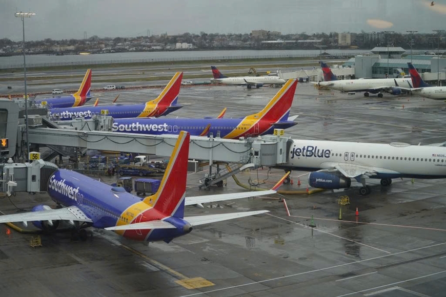 Ngành hàng không toàn cầu chao đảo do xung đột Trung Đông. Ảnh chụp ngày 23-3 tại sân bay LaGuardia, New York, Mỹ. |