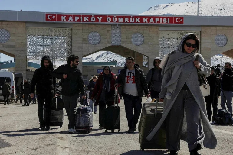 | Người tị nạn Iran vượt biên vào Thổ Nhĩ Kỳ tại cửa khẩu Kapikoy, phía Đông Thổ Nhĩ Kỳ (ngày 3-3). Ảnh: Reuters |