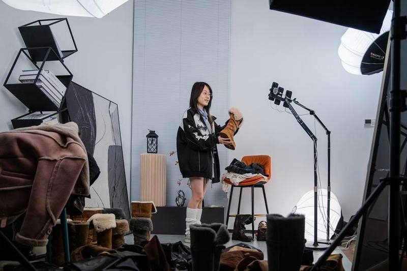 | Một nhân viên livestream bán hàng tại Trung Quốc. Ảnh: Tân Hoa xã |