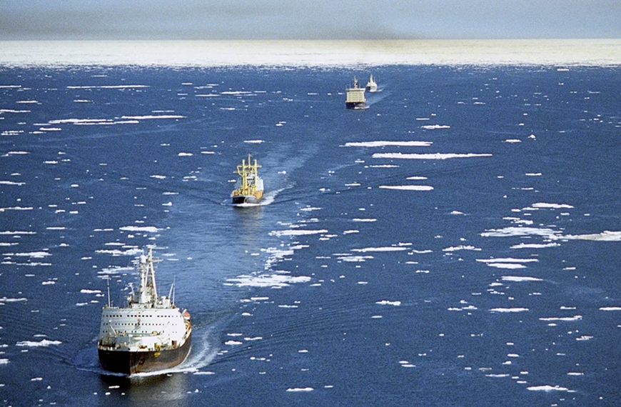 | Các tàu di chuyển trên tuyến đường biển phía Bắc (NSR). Ảnh: RIA Novosti |