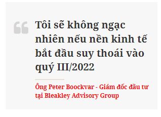 Một số chuyên gia cho rằng một cuộc suy thoái sẽ đến sớm hơn. "Tôi không ngạc nhiên nếu nền kinh tế bắt đầu suy thoái vào quý III/2022", ông Peter Boockvar - Giám đốc đầu tư tại Bleakley Advisory Group - nhận định.