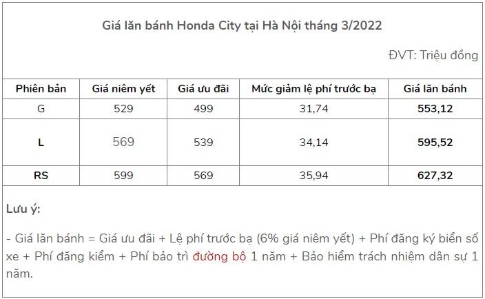 Tháng 3/2022, khách hàng tại Hà Nội chỉ cần từ 553 triệu đồng để lăn bánh Honda City