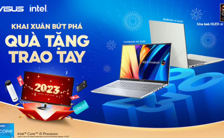 Nhân dịp năm mới 2023, ASUS Việt Nam triển khai chương trình khuyến mãi "Khai xuân bứt phá – Quà tặng trao tay", với 2023 phần quà có tổng giá trị hơn nửa tỷ đồng dành cho khách hàng khi mua laptop ASUS ở 10 đại lý trên toàn quốc.