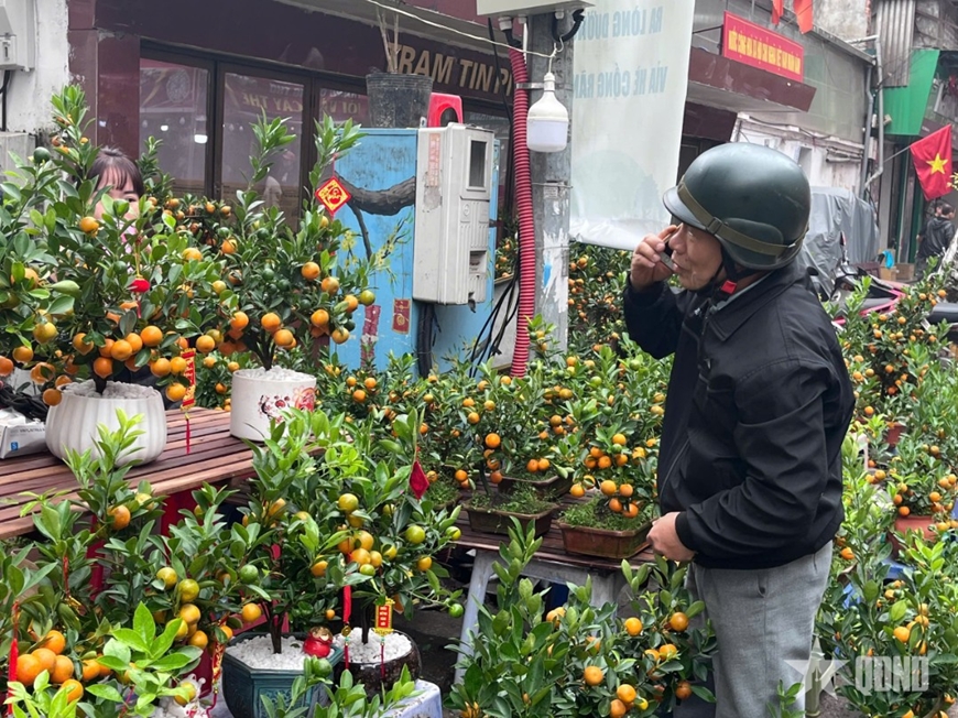 Trên phố phường Hà Nội, sắc xuân đã theo cành đào thắm, hương quất vàng e ấp, len lỏi khắp nơi. Không khí chuẩn bị Tết cũng lan tỏa đến mỗi người. Trong dịp Tết này, nhiều người dân lựa chọn chơi đào, quất sớm, đặc biệt ưa chuộng các cành đào nhỏ, chậu quất bonsai, tạo điểm nhấn cho không gian của mỗi gia đình.