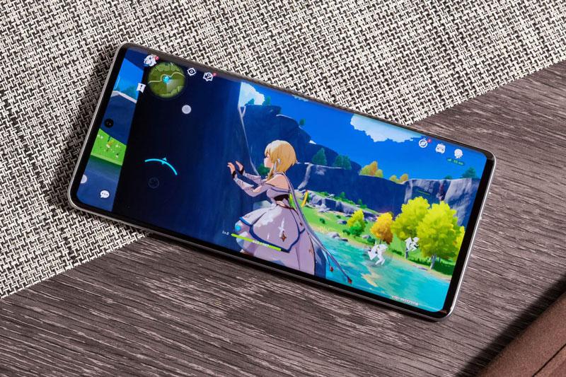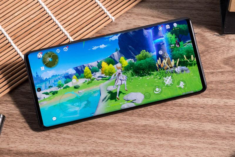 Màn hình này chia theo tỷ lệ 21:10, tần số quét 120 Hz, tốc độ lấy mẫu cảm ứng 240 Hz, bảo vệ bằng kính cường lực Corning Gorilla Glass Victus, chiếm 92,68%, thiết kế cong 2 cạnh viền.