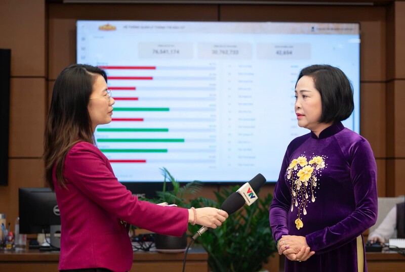 Phó Chủ tịch Quốc hội Nguyễn Thị Thanh trả lời phỏng vấn báo chí (bên phải)