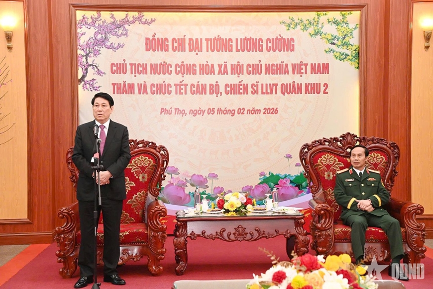 Phát biểu chỉ đạo, chúc Tết LLVT Quân khu, Chủ tịch nước Lương Cường khẳng định, trong năm qua, LLVT Quân khu 2 tiếp tục phát huy truyền thống vẻ vang, hoàn thành tốt và xuất sắc chức năng, nhiệm vụ đội quân chiến đấu, đội quân công tác, đội quân lao động sản xuất; là lực lượng nòng cốt xây dựng nền quốc phòng toàn dân, thế trận quốc phòng toàn dân, gắn với xây dựng thế trận an ninh nhân dân và thế trận “lòng dân” vững chắc.