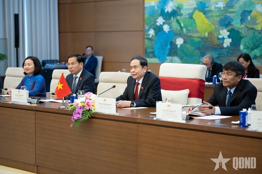 | Chủ tịch Quốc hội Trần Thanh Mẫn và các đại biểu phía Việt Nam tại cuộc tiếp. |