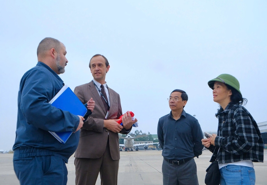 | Đại diện phía Liên bang Nga trao đổi cùng đại diện phía Việt Nam tại buổi tiếp nhận hàng viện trợ. Ảnh: Bộ Nông nghiệp và Môi trường |