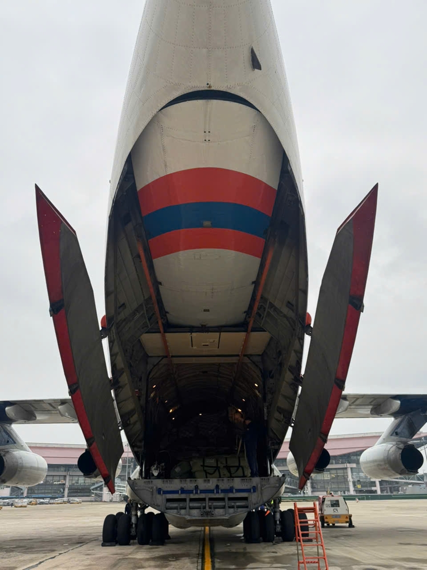 Chuyên cơ mang theo 30 tấn hàng Liên bang Nga viện trợ Việt Nam khắc phục hậu quả thiên tai. Ảnh: Đại sứ quán Liên bang Nga |