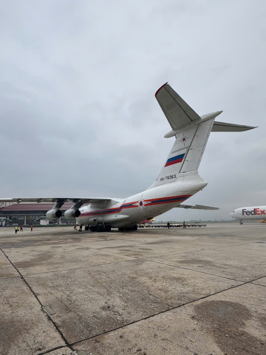 | Chuyên cơ mang số hiệu SUM-9121 của Bộ Tình trạng khẩn cấp Liên bang Nga hạ cánh tại sân bay Nội Bài. Ảnh: Đại sứ quán Liên bang Nga |