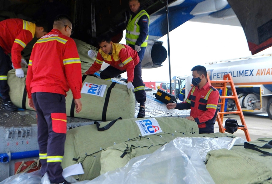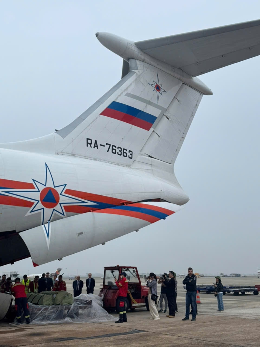 Sáng 30-10, chuyên cơ đặc biệt mang số hiệu SUM-9121 của Bộ Phòng vệ dân sự, tình trạng khẩn cấp và khắc phục hậu quả thiên tai Liên bang Nga (Bộ Tình trạng khẩn cấp Nga - EMERCOM) đã hạ cánh tại Cảng hàng không quốc tế Nội Bài (Hà Nội), mang theo 30 tấn hàng viện trợ nhân đạo giúp người dân các tỉnh miền Bắc và miền Trung Việt Nam bị ảnh hưởng của thiên tai.