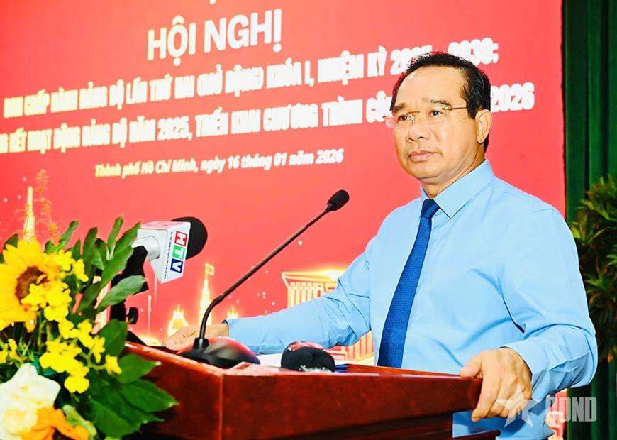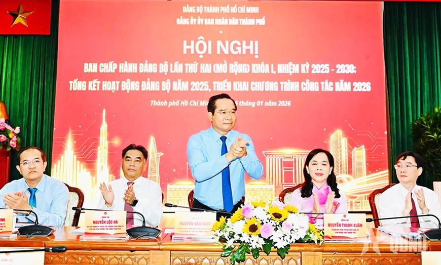 Sáng 16-1, Đảng ủy UBND TP Hồ Chí Minh tổ chức hội nghị lần thứ hai (mở rộng) Ban Chấp hành Đảng bộ UBND Thành phố khóa I, nhiệm kỳ 2025-2030; tổng kết hoạt động Đảng bộ năm 2025, triển khai chương trình công tác năm 2026. Đồng chí Nguyễn Văn Được, Ủy viên Trung ương Đảng, Phó bí thư Thành ủy, Bí thư Đảng ủy UBND, Chủ tịch UBND TP Hồ Chí Minh, chủ trì hội nghị.