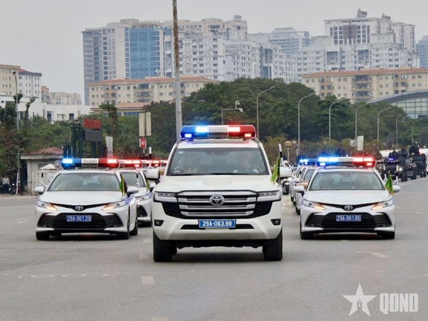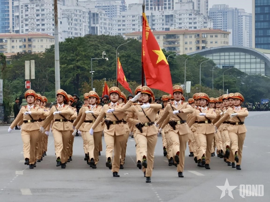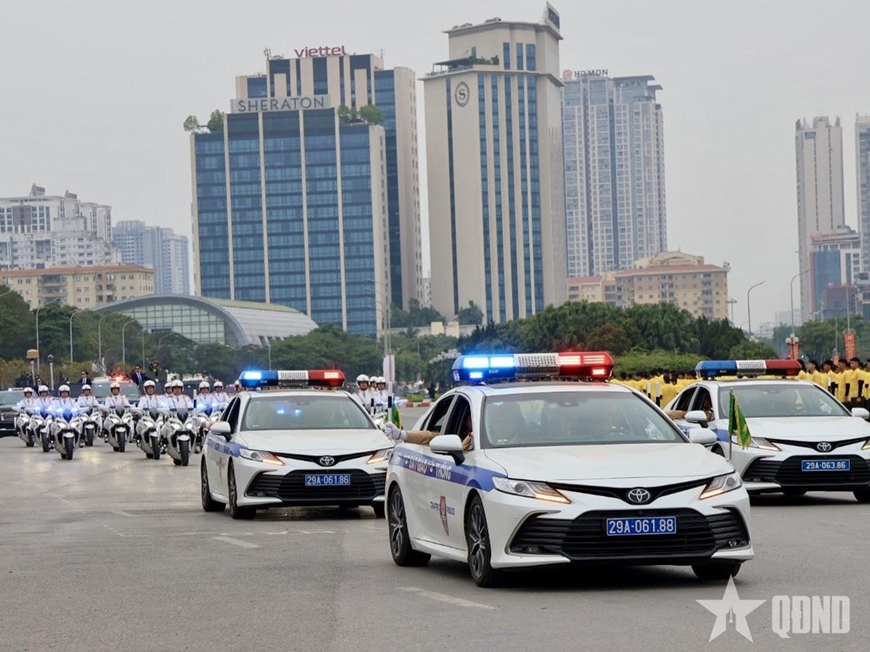Bên cạnh nhiệm vụ phân luồng, bảo đảm TTATGT, tại các khu vực trọng điểm, lực lượng CSGT Hà Nội còn huy động cán bộ, chiến sĩ và phương tiện chuyên dụng tham gia các khối diễu hành, phục vụ Lễ xuất quân và diễn tập phương án bảo vệ Đại hội.