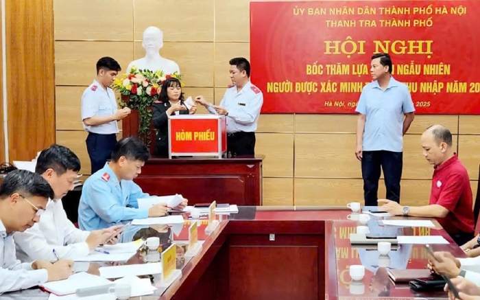 Bốc thăm lựa chọn ngẫu nhiên người được xác minh tài sản thu nhập năm 2025. Ảnh: hanoi.gov.vn |