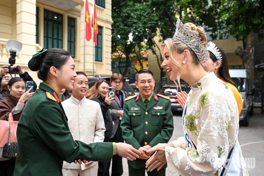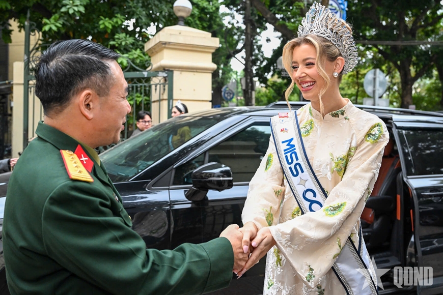 Hoa hậu Hoàn vũ quốc tế 2025 khởi đầu hành trình giao lưu tại Báo Quân đội nhân dân