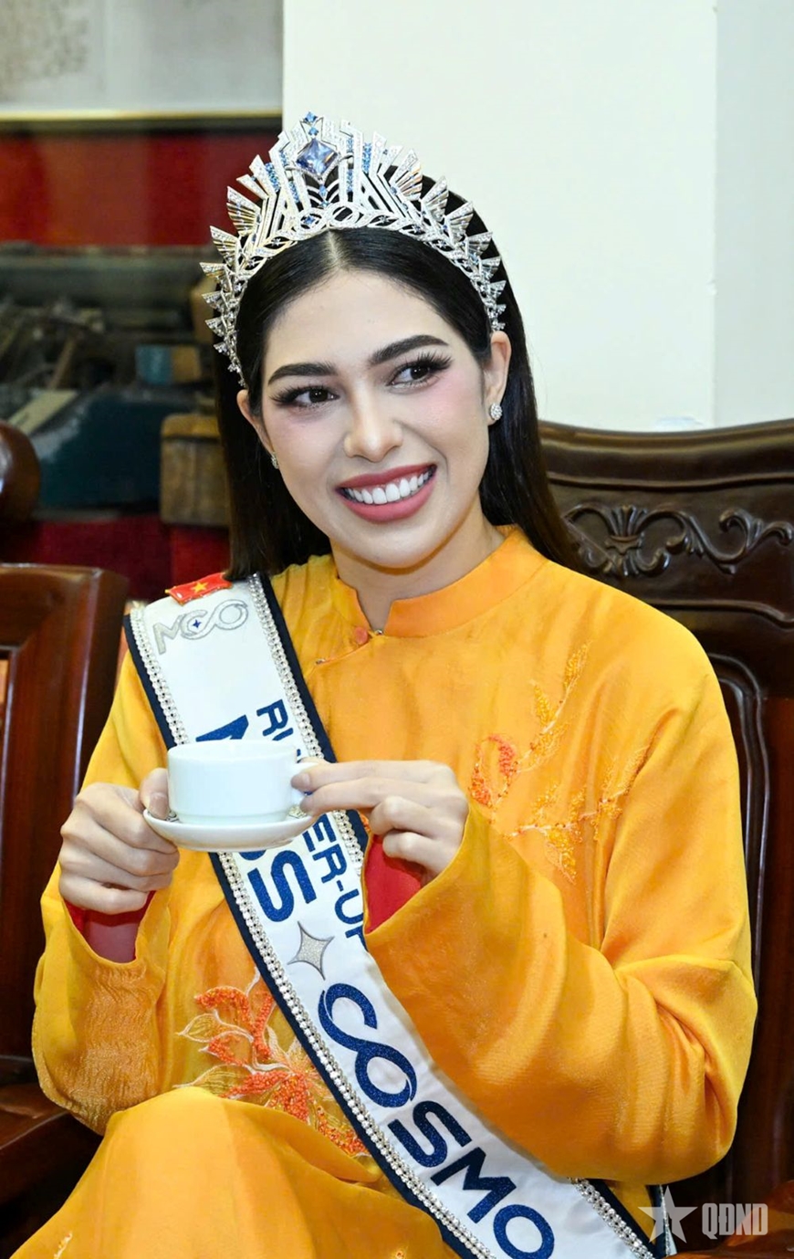 Đối với Á hậu Chelsea Fernandez, người đẹp cho biết đã nhiều lần đến Việt Nam, và rất ấn tượng, cảm kích tấm lòng hiếu khách, tốt bụng, hào phóng của người dân đất nước hình chữ S. Việt Nam luôn là đất nước mà Á hậu Chelsea Fernandez dành nhiều tình cảm và luôn muốn giới thiệu, chia sẻ cho bạn bè, người thân của mình. Với chuyên môn là một phóng viên phát thanh, truyền hình hoạt động tại Philippines, Á hậu Miss Cosmo 2025 bày tỏ sự khâm phục thành tựu mà Báo QĐND đã đạt được trong hơn 75 năm qua và vai trò quan trọng của tờ báo trong hệ thống báo chí cách mạng Việt Nam.