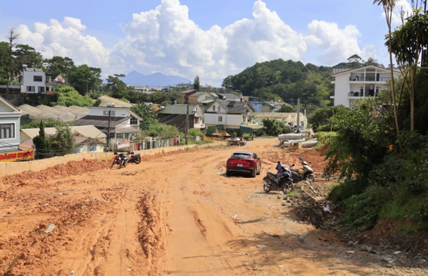 Dự án đường vành đai Đà Lạt có tổng chiều dài khoảng 7,5km, tổng vốn đầu tư 870 tỷ đồng, khởi công từ tháng 7-2021 và dự kiến hoàn thành vào cuối năm 2023. Tuy nhiên, đến nay, dù đã quá hạn gần hai năm nhưng con đường vẫn chưa hoàn thành. Ông Hoàng Anh Tuấn, Phó giám đốc Sở Xây dựng tỉnh Lâm Đồng cho biết, dự án vẫn còn 400m chiều dài chưa có mặt bằng sạch để thi công, 7 hộ dân thuộc phường Cam Ly-Đà Lạt chưa đồng ý với phương án bồi thường, chưa chịu bàn giao mặt bằng.