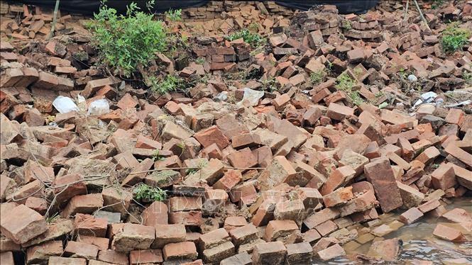 | Lượng lớn gạch tường Hoàng thành nằm ngổn ngang sau khi bị sập. |