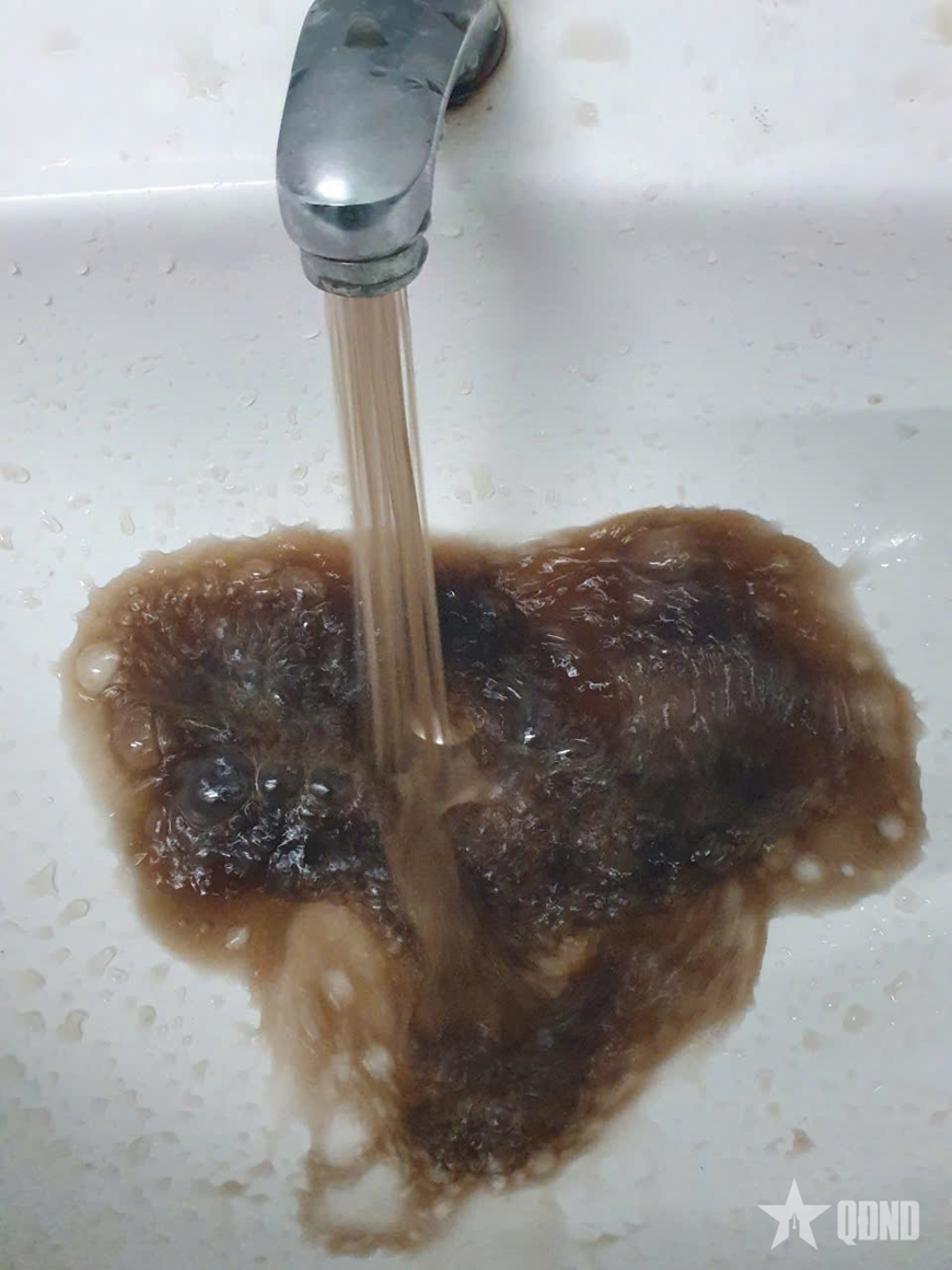 | Nước ngọt là vấn đề nan giải đối với người dân vùng lũ. |