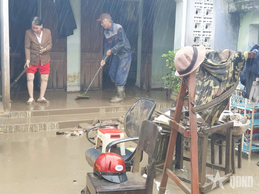 | Người dân khắc phục hậu quả lũ lụt sau khi nước rút. |