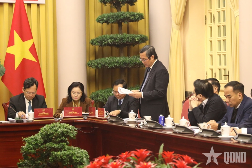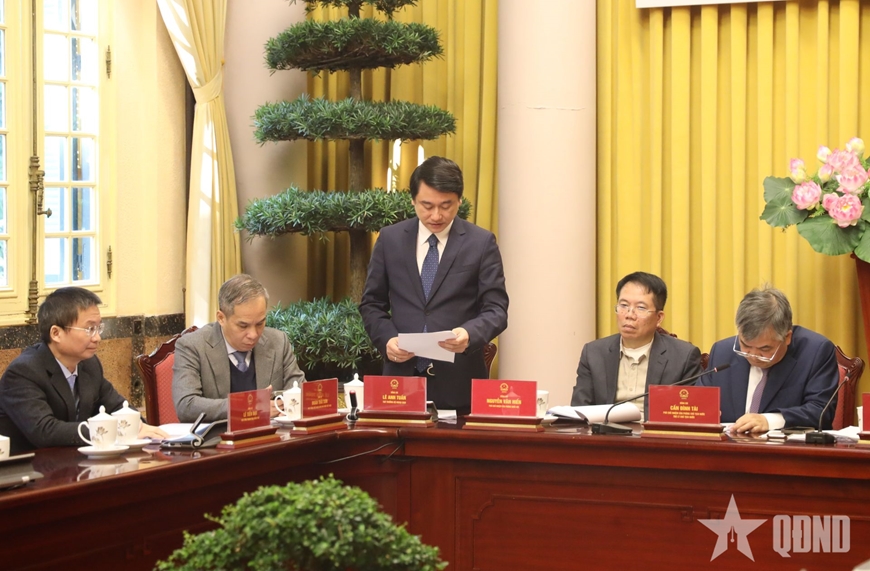 Sáng 7-1, tại Phủ Chủ tịch, Văn phòng Chủ tịch nước tổ chức họp báo, công bố Lệnh của Chủ tịch nước công bố 12 luật đã được Quốc hội khóa XV thông qua tại Kỳ họp thứ mười. Chủ trì họp báo có đại diện Văn phòng Chủ tịch nước và đại diện các ban, bộ, ngành Trung ương.