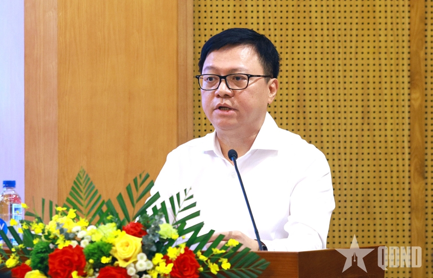 Đồng chí Lê Quốc Minh, Ủy viên Trung ương Đảng, Tổng biên tập Báo Nhân Dân, Phó trưởng Ban Tuyên giáo và Dân vận Trung ương, Chủ tịch Hội Nhà báo Việt Nam giới thiệu chuyên đề tại hội nghị. |