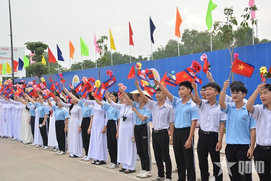 Ngay từ sáng sớm, bầu không khí rộn ràng, tươi vui, thắm tình đoàn kết, hữu nghị ngập tràn cặp cửa khẩu quốc tế Mộc Bài - Bavet.