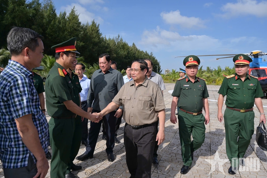 Thủ tướng Phạm Minh Chính kiểm tra tiến độ thi công các dự án hạ tầng chiến lược tại Đất Mũi. |