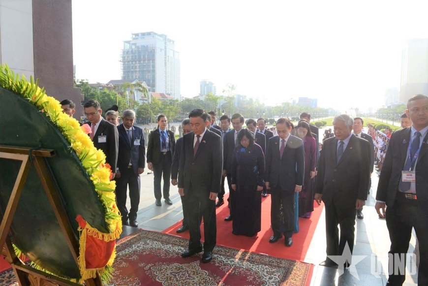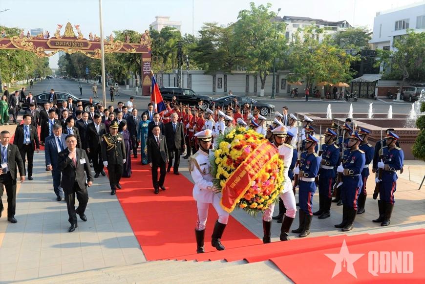 Thường trực Ban Bí thư đặt vòng hoa tại Đài tưởng niệm cố Quốc vương Norodom Sihanouk.