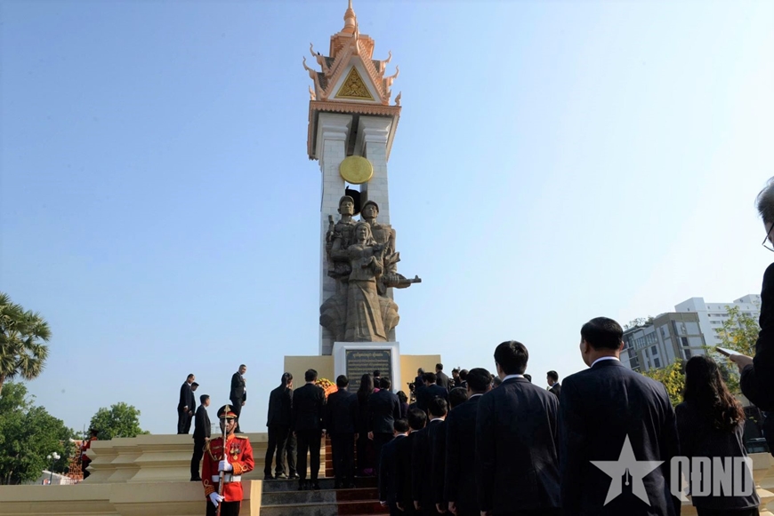 Thường trực Ban Bí thư Trần Cẩm Tú đặt vòng hoa tại các đài tưởng niệm ở Campuchia
