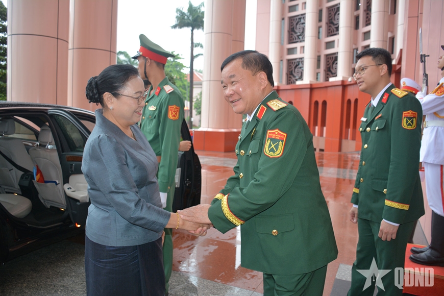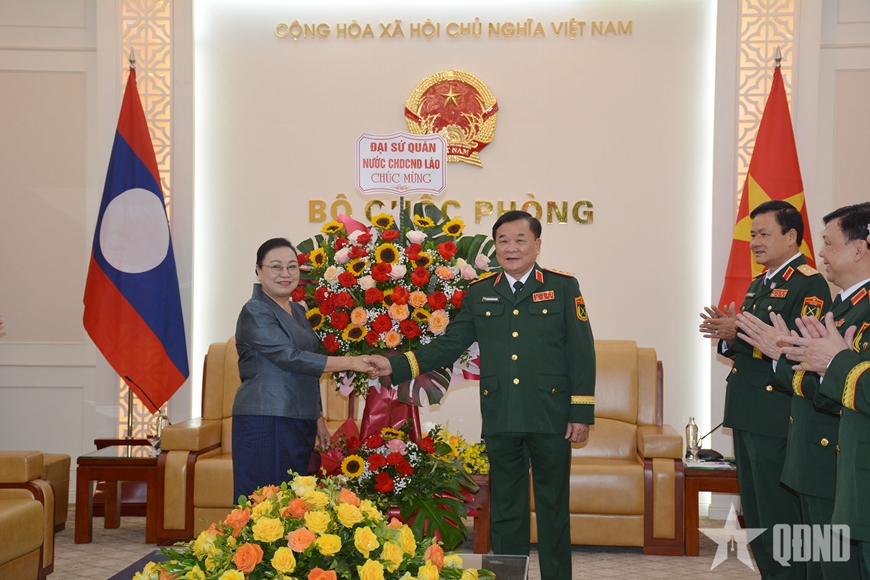 Đại sứ Khamphao Ernthavanh đánh giá cao kết quả hợp tác quốc phòng Việt Nam-Lào thời gian qua, trong đó có đào tạo nguồn nhân lực, tăng cường hợp tác bảo vệ biên giới hai nước...