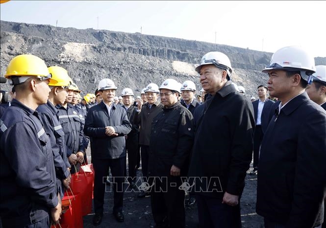 | Tổng Bí thư Tô Lâm, Thủ tướng Phạm Minh Chính thăm, động viên cán bộ, công nhân trực tiếp sản xuất tại Công ty Cổ phần Than Đèo Nai - Cọc Sáu, Tập đoàn Công nghiệp Than và Khoáng sản Việt Nam, tại tỉnh Quảng Ninh. |
