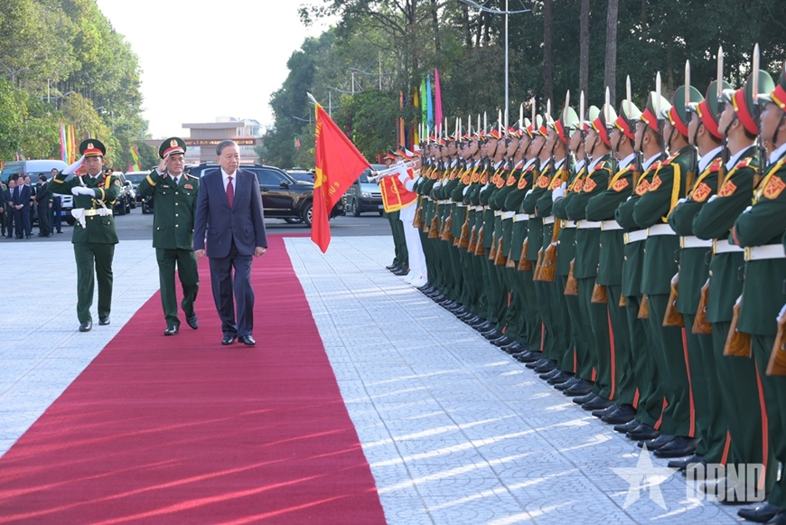 | Tổng Bí thư Tô Lâm duyệt đội danh dự Quân khu 9. |