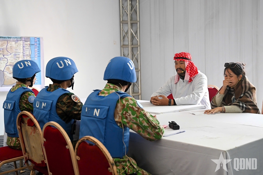 Tình huống của diễn tập là có nhóm người gồm 1 nam và 2 nữ tụ tập bên ngoài la hét, đòi gặp chỉ huy của Đội Công binh để khiếu kiện về việc quấy rối và bạo lực tình dục với một phụ nữ của nhóm người trên. Tiếp đó, có khoảng 20-30 người mang theo gậy gộc, gạch đá, các vật thể lạ đến vị trí doanh trại của Đội Công binh, la hét, hô hào, đòi lực lượng của Liên hợp quốc rời khỏi vị trí, đòi cung cấp lương thực, đòi trả lại công bằng cho người phụ nữ đang cáo buộc nhân viên Liên hợp quốc. Lực lượng biểu tình sau khi tập hợp lực lượng đã áp sát tới cổng chính, đập phá hàng rào, ném gạch đá vào bên trong doanh trại, hò hét, chửi bới lực lượng của ta.
