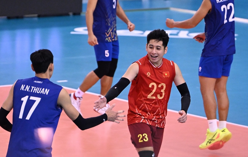 Cao Đức Hoàng (số 23) thi đấu tại giải AVC Nations Cup 2025. Ảnh: AVC |