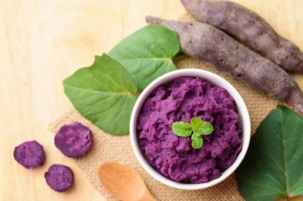 Khoai lang tím rất bổ dưỡng, cung cấp chất chống oxy hóa anthocyanin và nhiều loại vitamin, khoáng chất như vitamin A, B, C, kali. Các vitamin, khoáng chất này hỗ trợ sức khỏe của mắt, tăng cường hệ thống miễn dịch, làn da khỏe mạnh.