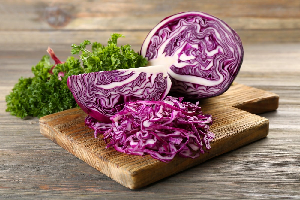 Bắp cải tím chứa nhiều vitamin A, C. Đây là nguồn cung cấp chất xơ dồi dào, giúp cải thiện sức khỏe tiêu hóa, nhu động ruột hoạt động trơn tru. Màu tím trong bắp cải là do hợp chất anthocyanin tạo nên, có đặc tính chống viêm và chống ung thư. Thêm bắp cải tím vào các bữa ăn hàng ngày trong món salad hoặc ăn kèm để tăng thêm lượng chất dinh dưỡng tốt cho sức khỏe.