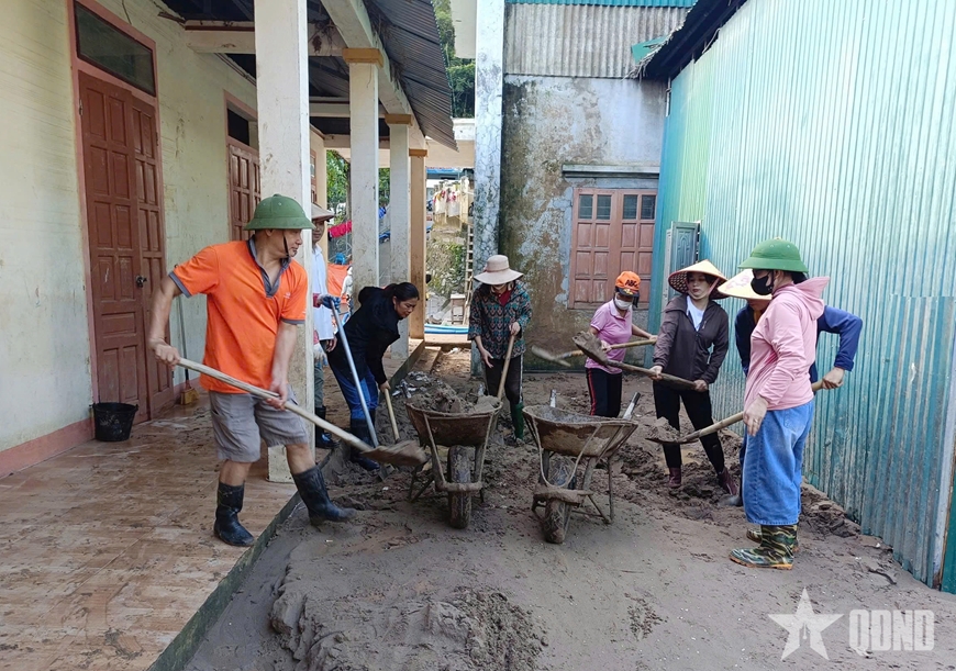 | Trường Phổ thông dân tộc bán trú Tiểu học Mường Típ 2 (xã Mường Típ, tỉnh Nghệ An) tổng vệ sinh sau lũ. |