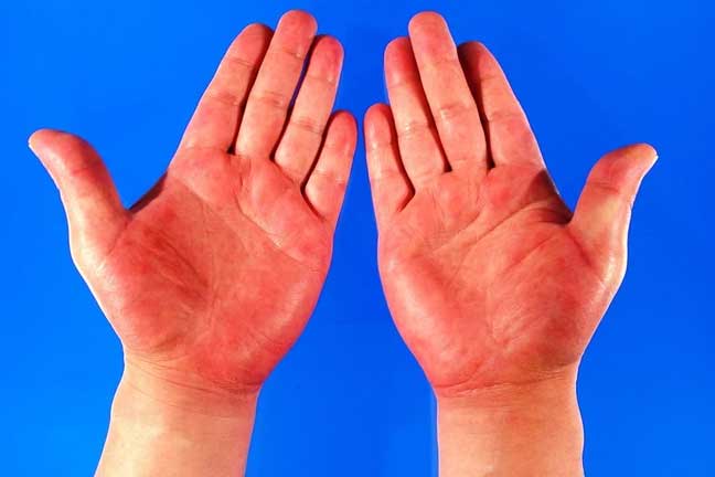 Bên cạnh đó, tình trạng lòng bàn tay ửng đỏ còn là triệu chứng cảnh báo bệnh viêm khớp dạng thấp.