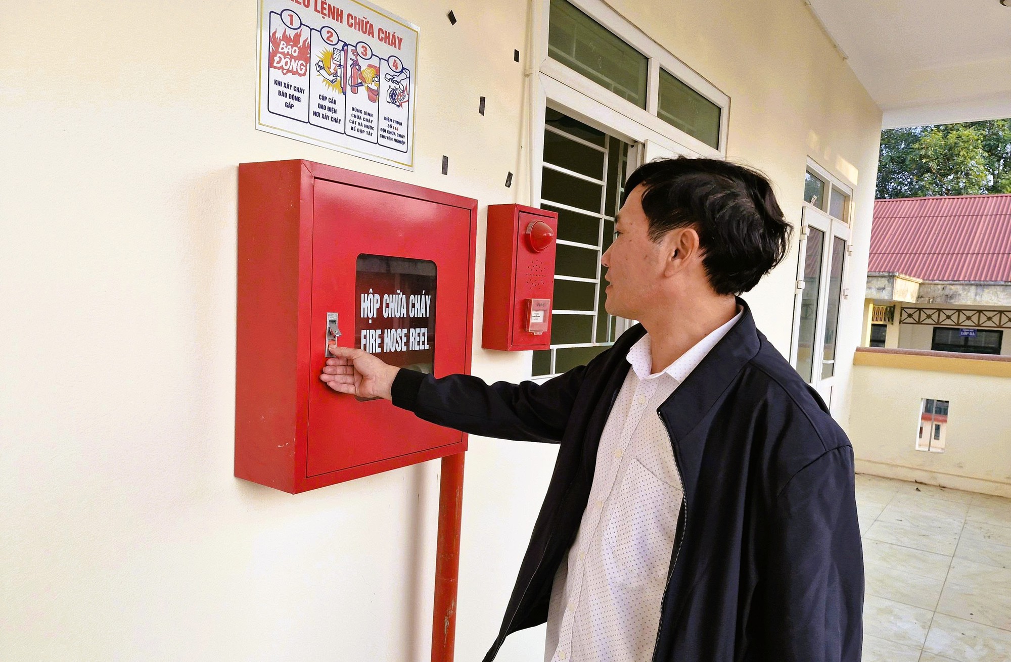 Hiệu trưởng trường THCS Hợp Tiến cho biết công trình chưa thể đưa vào vận hành do hệ thống phòng cháy, chữa cháy chưa xây dựng xong