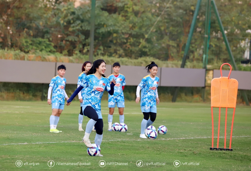 Ngay trong ngày tập trung, các nữ cầu thủ nhanh chóng ra sân tập luyện với tinh thần hứng khởi, tích cực và tập trung cao. Theo kế hoạch, thầy trò huấn luyện viên Mai Đức Chung sẽ tập luyện tại Hà Nội trong hơn ba tuần, trước khi lên đường sang Trung Quốc tập huấn.